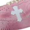 Las Nike Air Force 1 x Chrome Hearts son la fusión perfecta entre el clásico estilo urbano de Nike y la estética de lujo de Chrome Hearts. Este modelo destaca por su base en cuero premium, adornado con cruces rosadas características y cordones exclusivos que elevan el diseño a otro nivel.